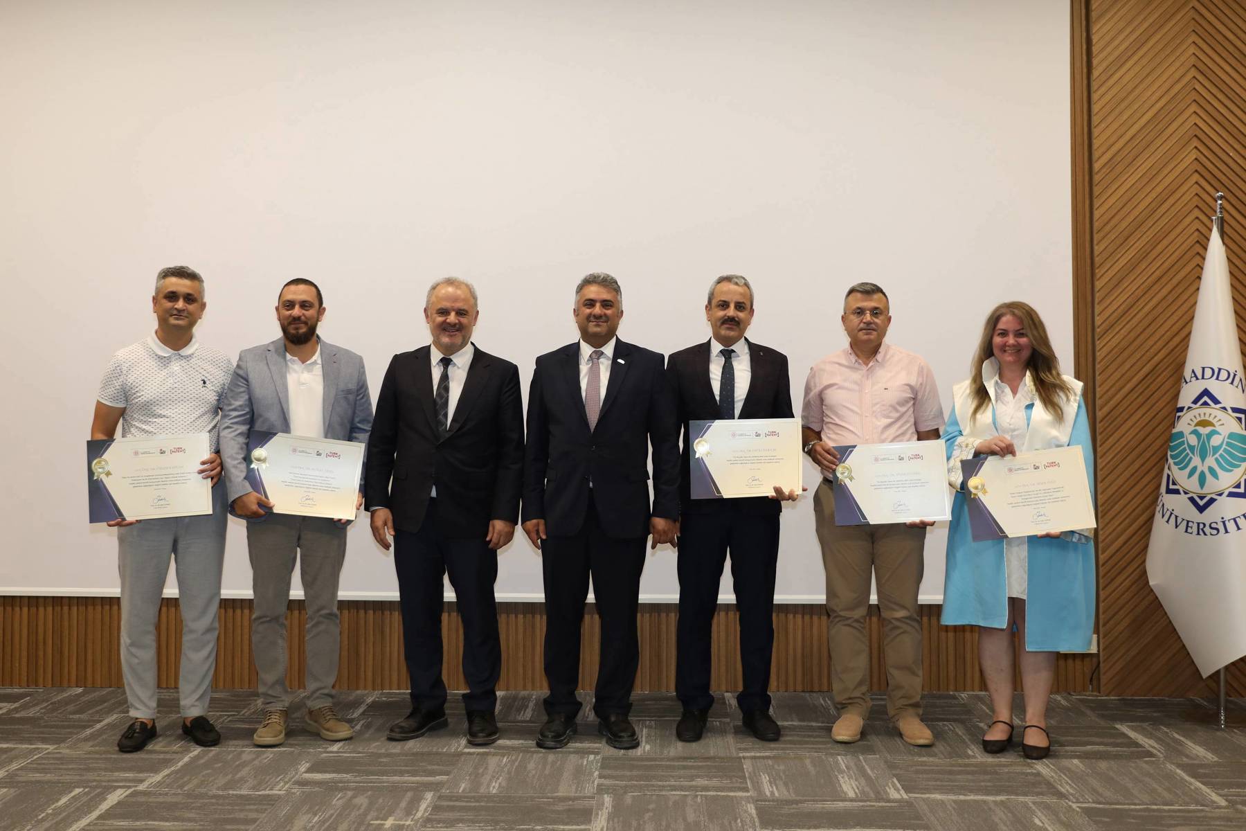 Türk Patent ve Marka Kurumu Başkanı Prof. Dr. Muhammed Zeki Durak'ın “Sınai Mülkiyet ve Ticarileşme” başlıklı seminerde üniversitemizde patent başvurusu tescillenen akademisyenlerden bölüm başkanımız Doç. Dr. Sinan UZUNLU'ya Türk Patent ve Marka Kurumu Başkanı Prof. Dr. Muhammed Zeki Durak ile üniversitemiz Rektör Yardımcısı Prof. Dr. Atıf Bayramoğlu tarafından belgeleri takdim edildi.